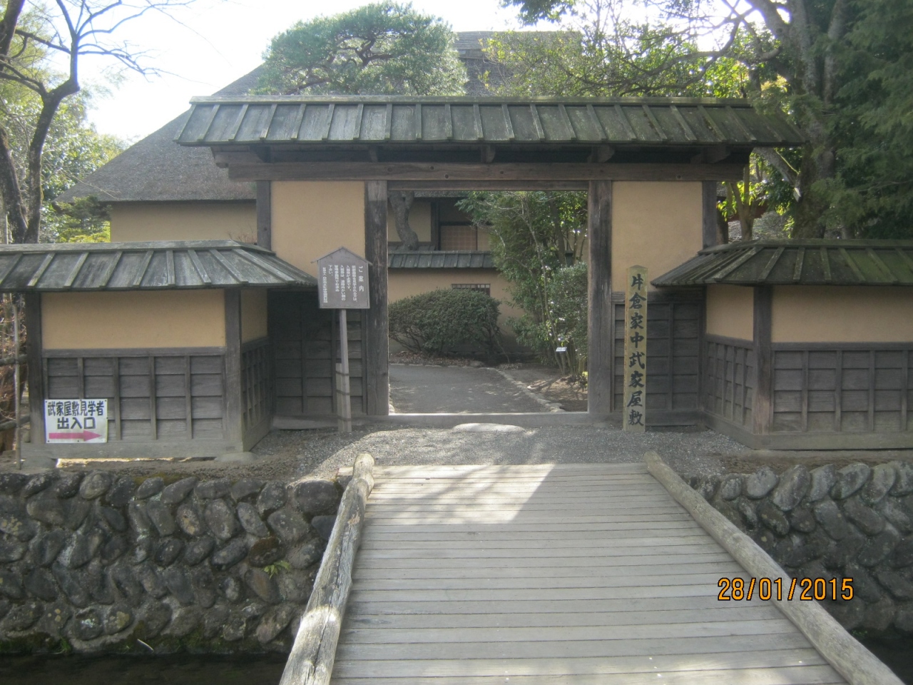 白石城の北側で、沢端川沿いにあります。この小関家の屋敷は北と東が沢端川が流れています。そこに今も門と塀と母屋が当時の面影を残したたたずんでいます。母屋の屋根はわらぶきです。瓦葺ではないです。前庭と西庭は優雅です。当時の人々が今にもあらわれそうです。