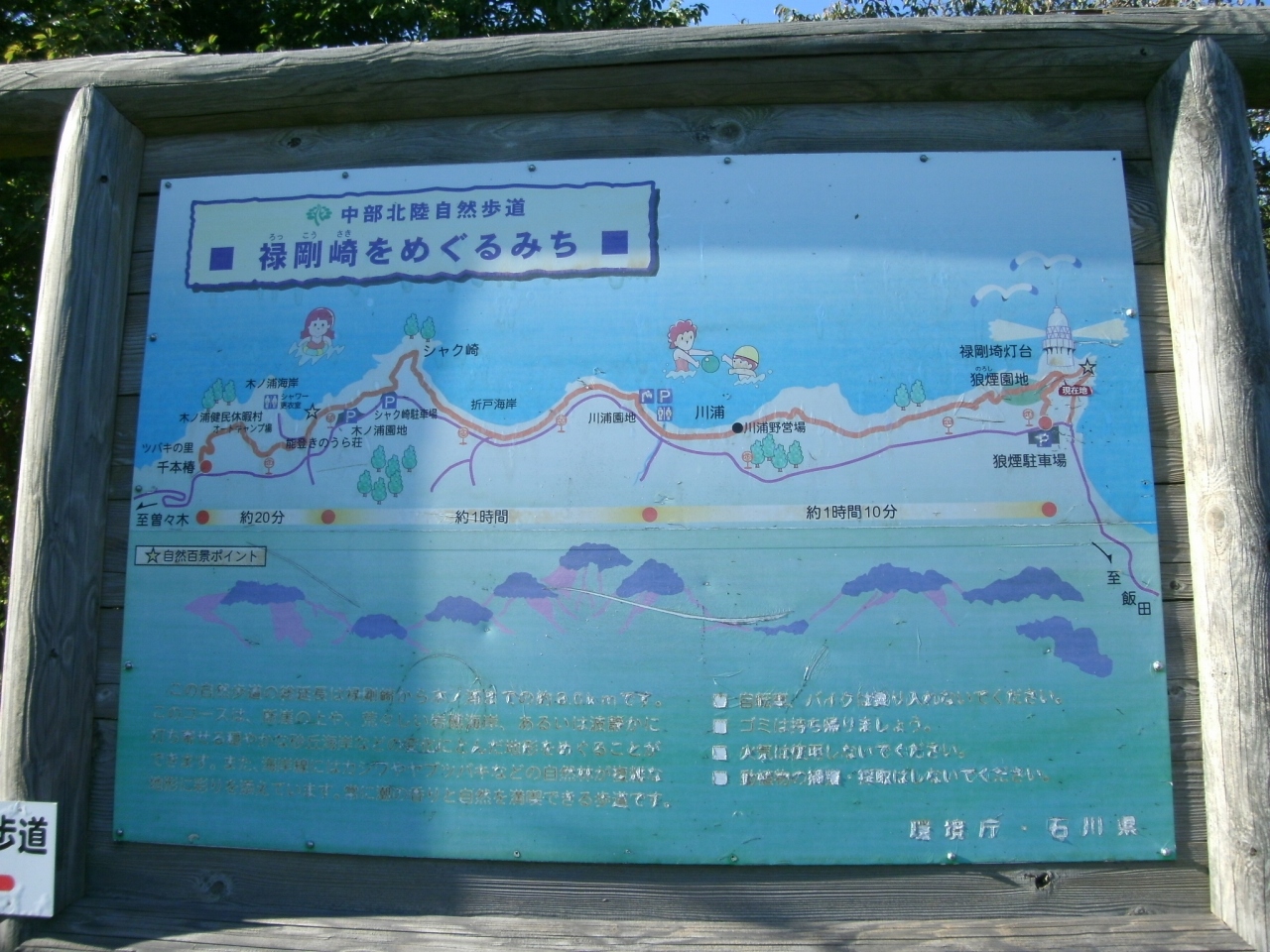 能登半島の最北端の岬です。岬の先端までは、ふもとのに“道の駅 狼煙”に車を停めて、10分ほど歩く必要がありますが、その先には明治時代に造られた白亜の禄剛埼灯台がそびえています。灯台の周りは“狼煙園地”として整備されていて、ベンチや東屋も整備されていて、日本海を望みながら散策するのにとても良いところです。