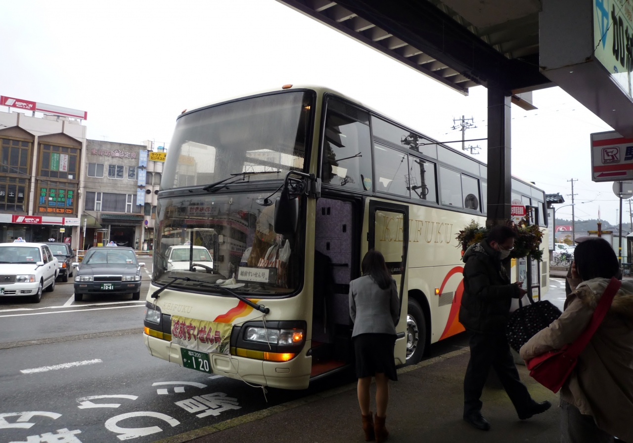 乗り場はJR芦原温泉駅前、あわら湯の町駅前です。