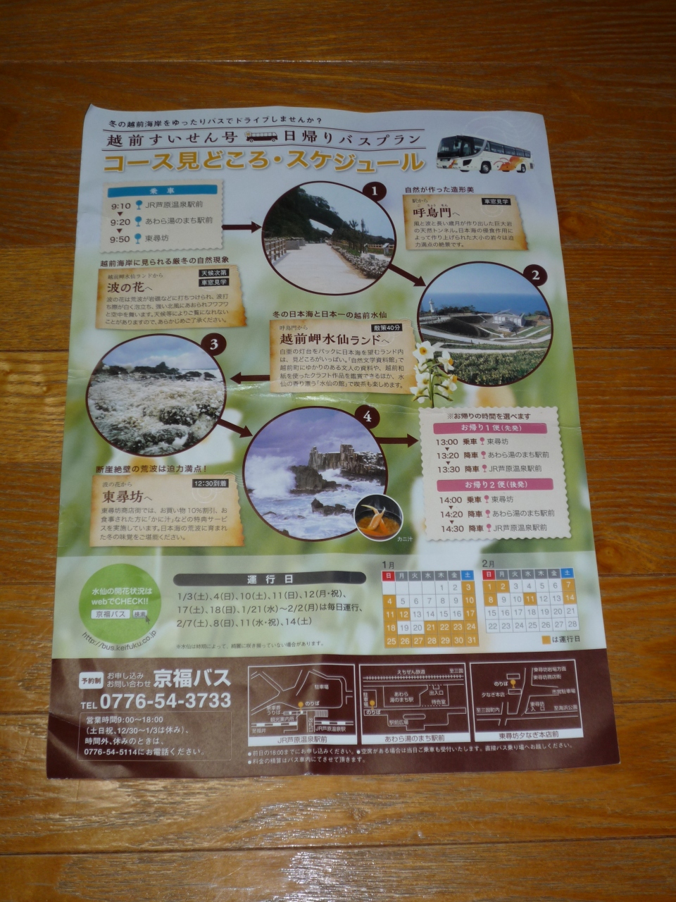 東尋坊と越前水仙ランドに行きたいと思いましたが、