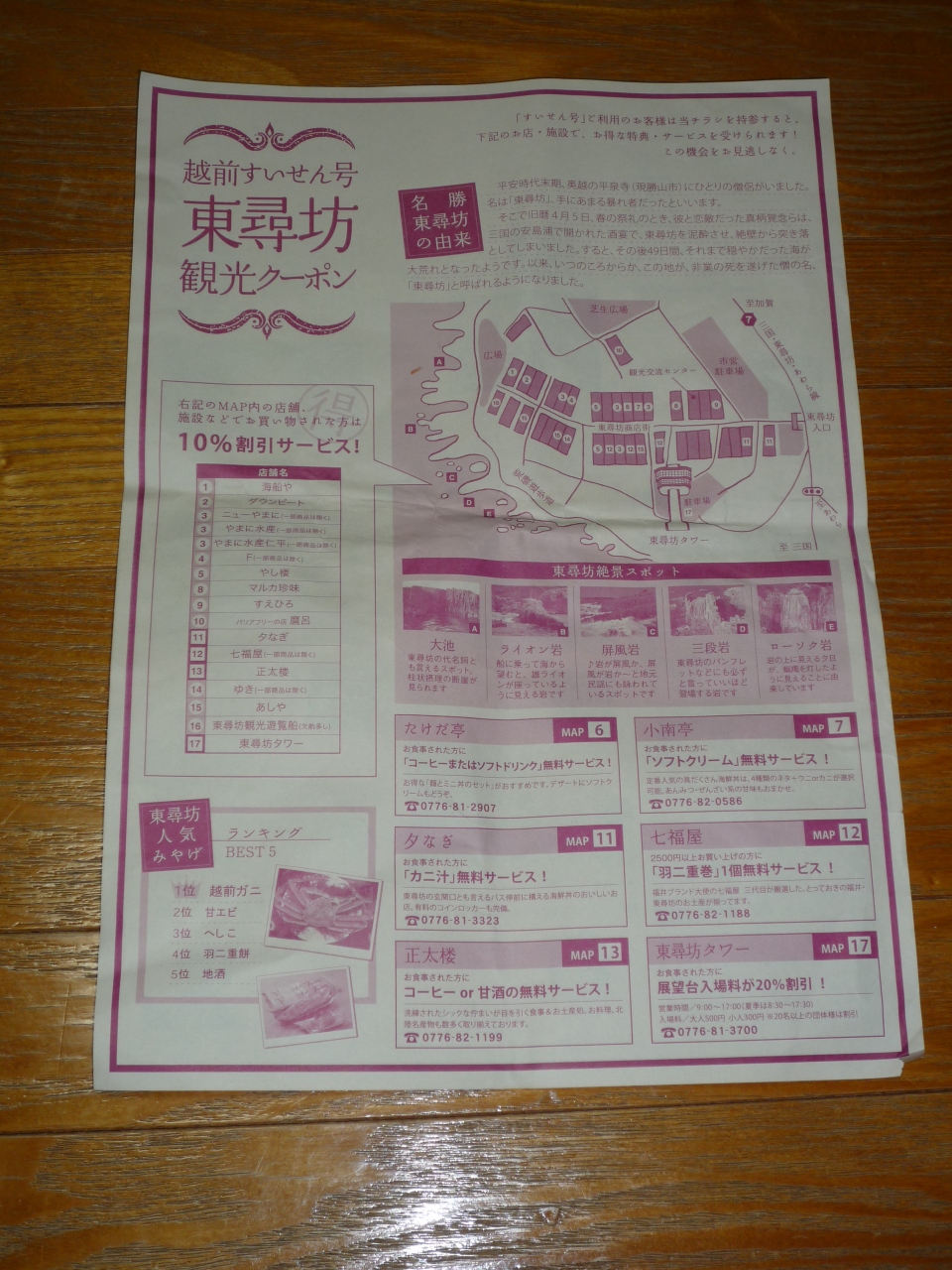 それで、オプションであった「越前すいせん号」を申し込みました。