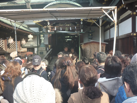 受験生やその親御さんで、境内はたいへん混雑しています。