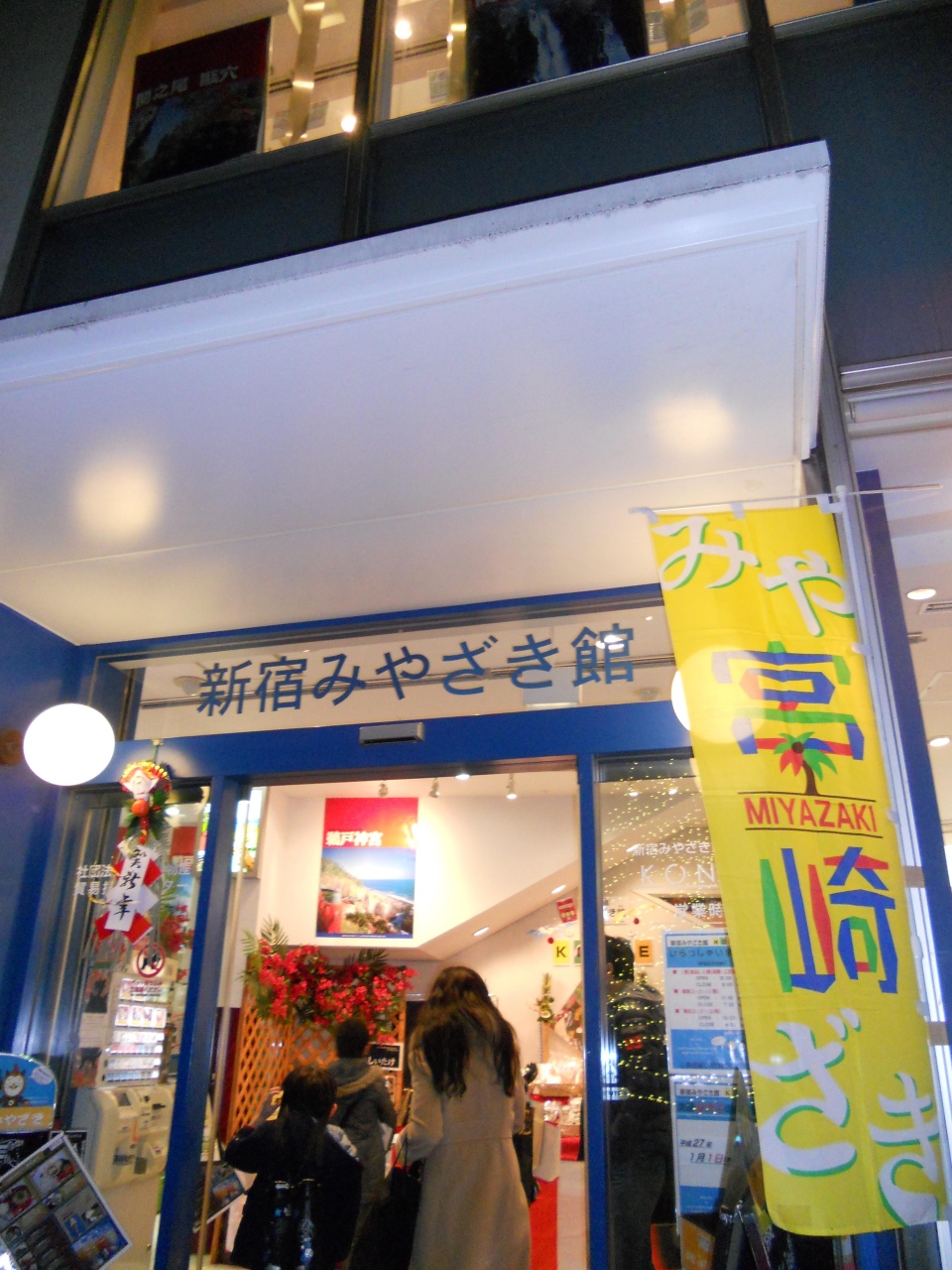 新宿のサザンテラスのイルミネーションを見るために歩いていたら偶然発見しました。新宿駅から向かって右側のサザンテラスの中にあります。名前の通り宮崎県のアンテナショップです。1階は食品、2階が工芸品になっています。宮崎名産品の品ぞろえがすばらしい!せっかくなので、マンゴーのドリンクなど購入してきました。