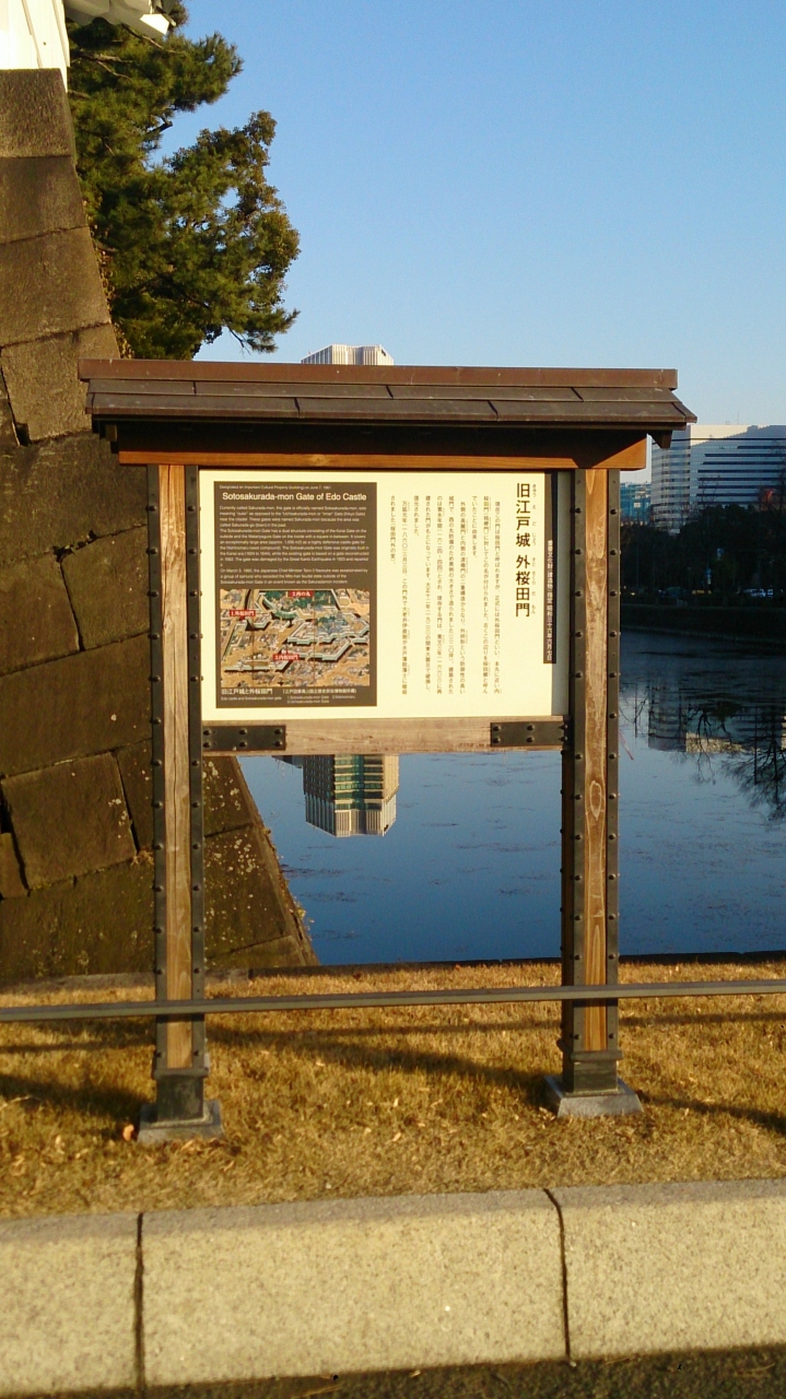 二重橋から西側にお堀沿いに行くとあらわれる、立派な門であり、教科書にも必ず載っている歴史的事件の舞台。今は平和なんでしょうね、ジョギングするランナーがひっきりなしに通過していく感じです。門そのものはかなりの内側から見ると相当立派ですが、外側から見ると普通の大きさです。