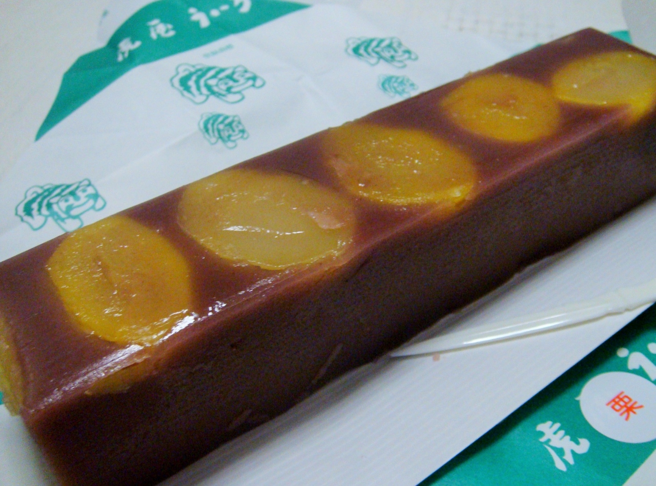 こしあんういろに栗が並んでいます、大粒の栗が美味しいのです。