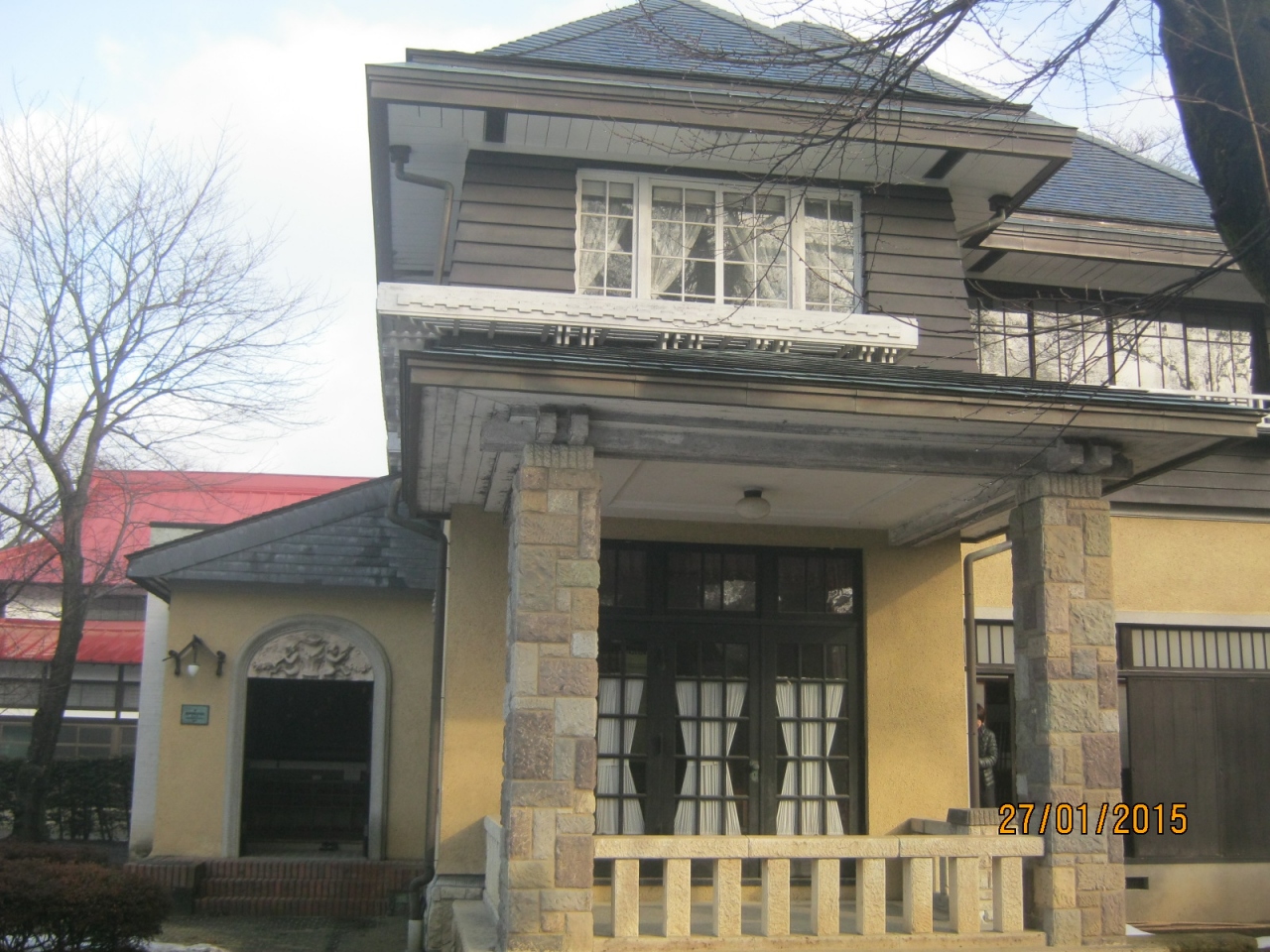 大正時代に沼田藩主であった土岐家の子爵が大正時代の渋谷の住宅として建てられました。今は沼田公園の中に移築されています。洋館はドイツの別荘風住宅造りです。特色は「牛の目」という屋根窓です。外観は洋館ですが、内部は玄関とそこに連接する応接間が洋風でその他は和風で和洋折衷です。外観と内部が生活の場のちがいでしょうか。