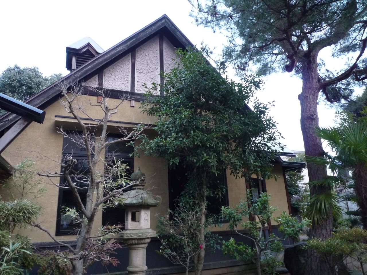 周囲が和風の建築の中、瀟洒な洋館でバラ園もありました。