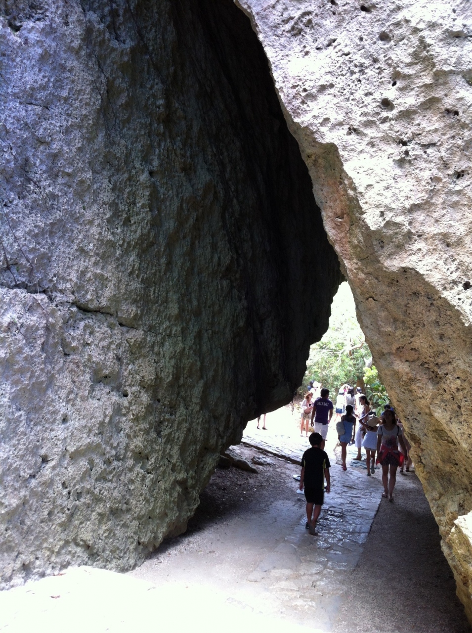 石で作られた道は、所々いたんでいましたし、とても滑りやすく注意がいります。出来れば歩きやすい靴がいい。