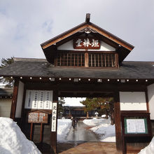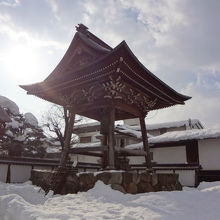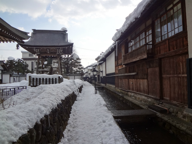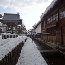 飛騨古川駅前右手にある観光案内所側から瀬戸川方面にまっすぐの道を行くと右手にすぐあるお寺です。