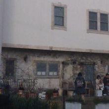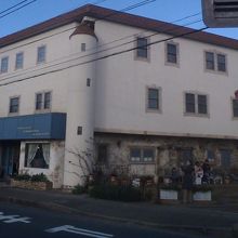 三階建ての洋風のビルが本店で、南側には欧風ガーデンになっています。