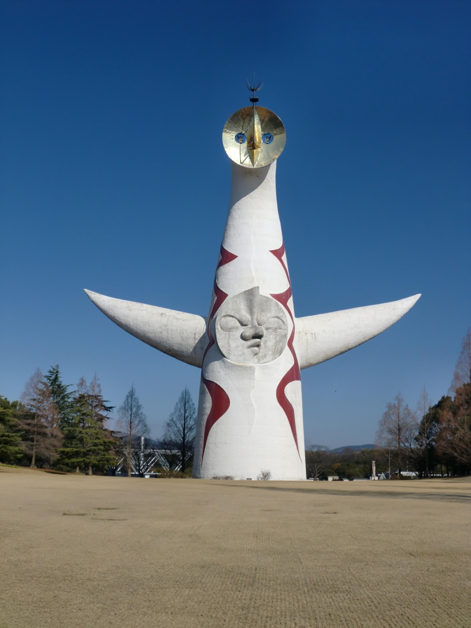 太陽の塔は、芸術家の岡本太郎がデザインしたので有名です。日本万国博覧会のシンボルゾーンにテーマ展示館として、つくられたものです。なかは空洞になっており、博覧会当時は展示空間だったそうですが、現在は公開していませんので中にははいれません。とてもインパクト大きい塔です。