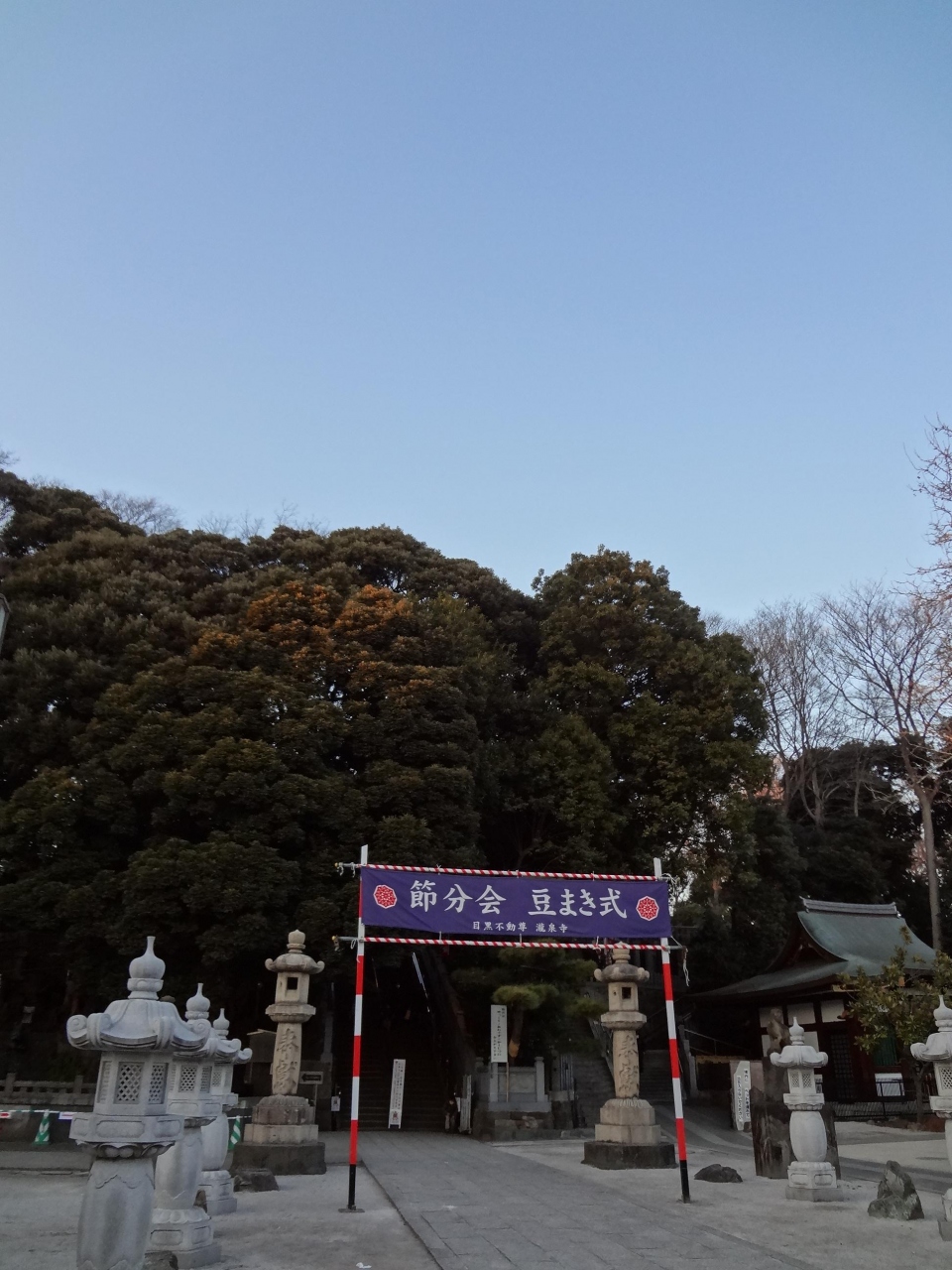 目黒のお不動さんとして有名な瀧泉寺。2月3日の朝に訪れたところ、節分会の準備をしているようでした。毎年、多くの人で賑わっています。ゆっくりお参りしたい方は、行事のある日は避けたほうが良いかも知れません。