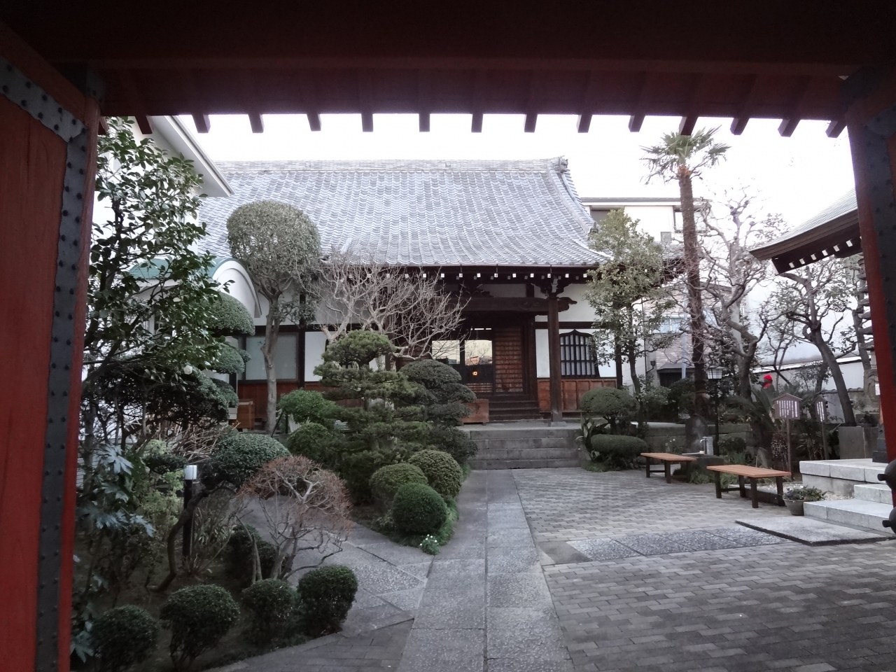 目黒の御不動さんとして有名な瀧泉寺の近くにあるお寺です。瀧泉寺のような大きなお寺ではありませんが、手入れの行き届いたお庭の、落ち着いたお寺です。門前には、日本建築の代表的な門の形式である、四脚門があります。