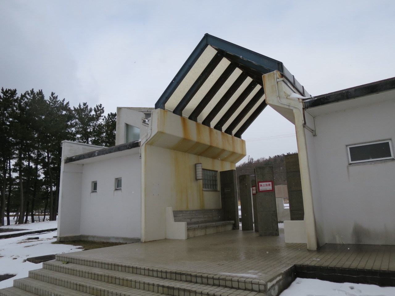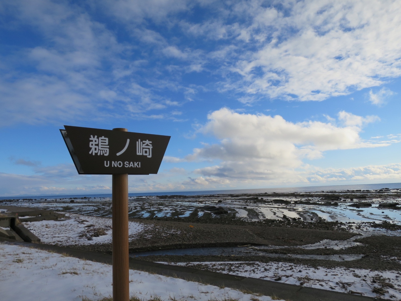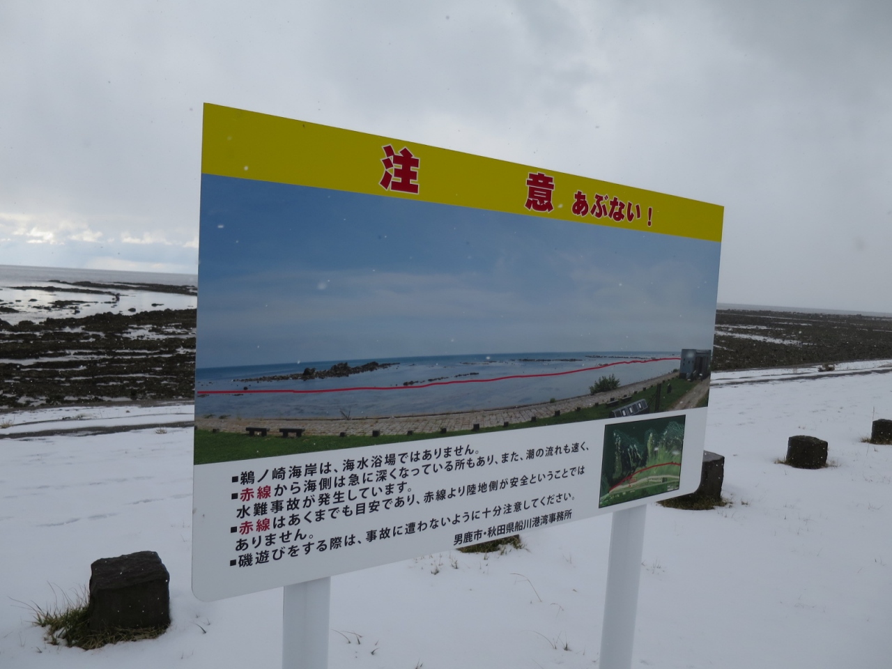 それでも海岸沿いの通りには、トイレとその後ろにシャワーがありました(鵜の崎灯台や、鵜ノ崎バス停、秋田県水産振興センターの近く)。無料の駐車スペースもあります。ただ、周辺は過疎の地域という雰囲気で、海岸のあたりではコンビニは勿論、皆無、商店すらほとんど見かけません。たまに、夏場は営業していそうな食事処、また、つり具店などがありました。