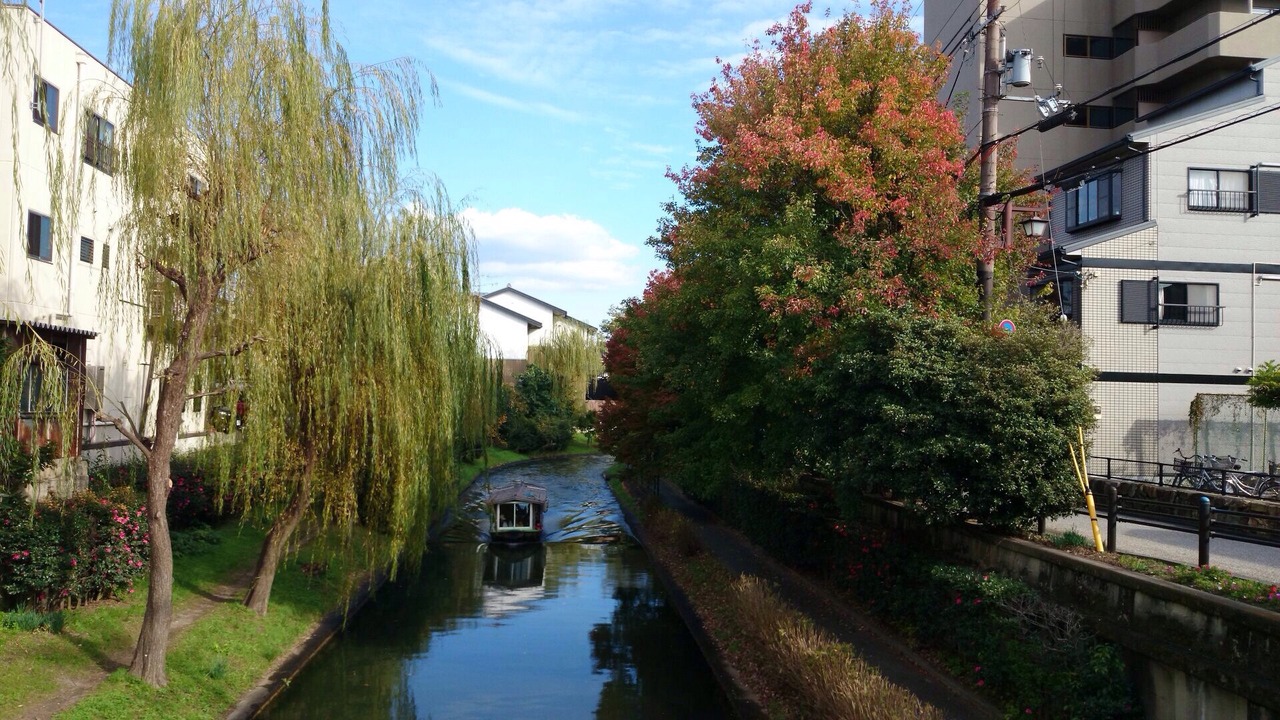 十石船で、伏見の川を下っていきます。