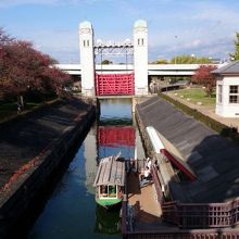 途中休憩を兼ねて、三栖閘門というところで降ります。