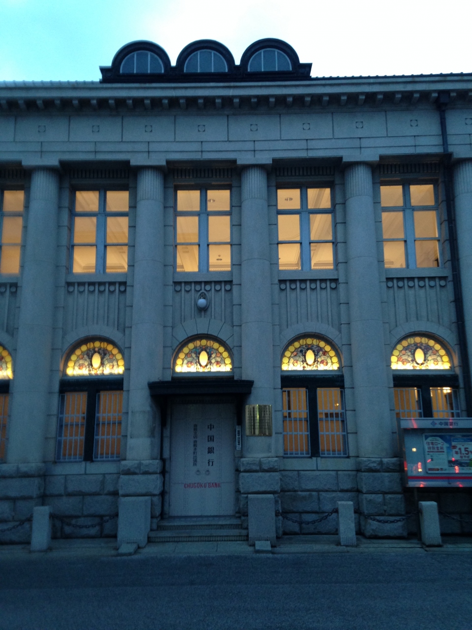 ちょっと懐かしい感じの銀行です。カウンターも「テラゾウ」ですか?大理石っぽい仕上げになっています。