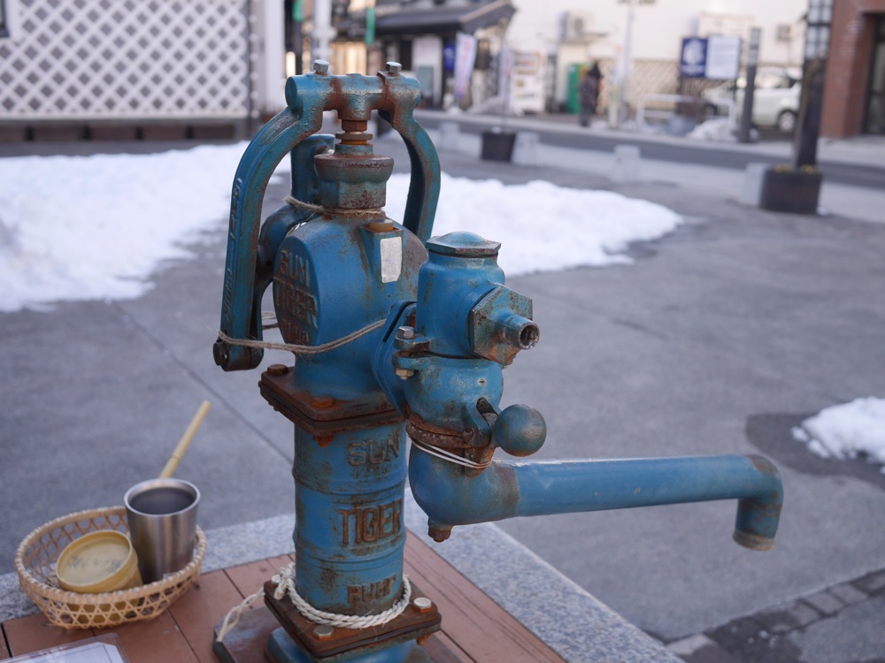 松本市街地には水路や湧き水の井戸がたくさんあり「城下町湧水群」として「平成の名水選」挙げられています。中町通りには手押しポンプの井戸が二つあり、そのうちの一つがここ。昔ながらの方法で清流を汲み上げることができます。