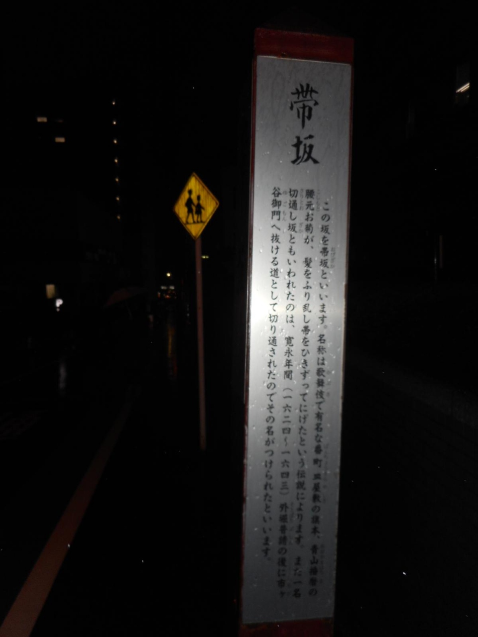 JR総武線の市ヶ谷駅から靖国通りを少し進み右に折れたところにある上り坂が帯坂です。