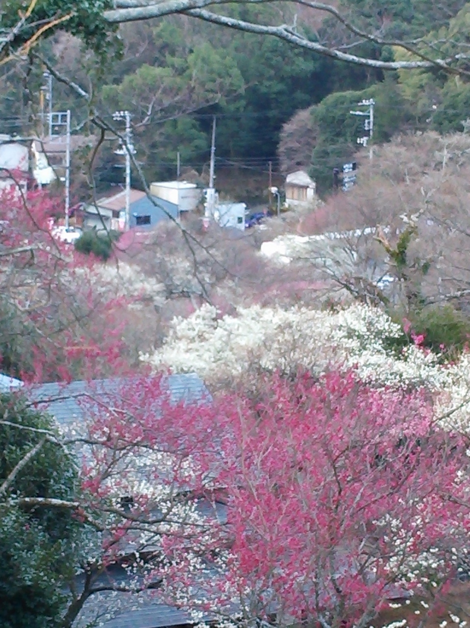 なだらかな丘に沿って色々(紅・白梅、蠟梅)な梅が咲いていました。
