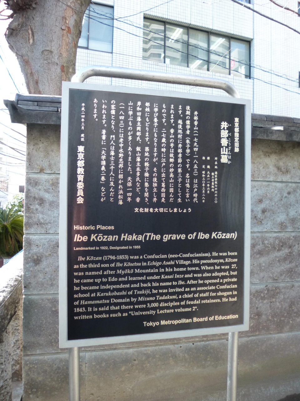 赤坂、乃木坂、六本木、青山一丁目駅。どの駅からも歩けますが、どの駅からも遠い公共交通アクセスの不便な場所に、浄土真寺院の報土寺があります。江戸時代の儒学者として知られる「井部香山の墓」は、こちらのお寺にあり、案内板があります。