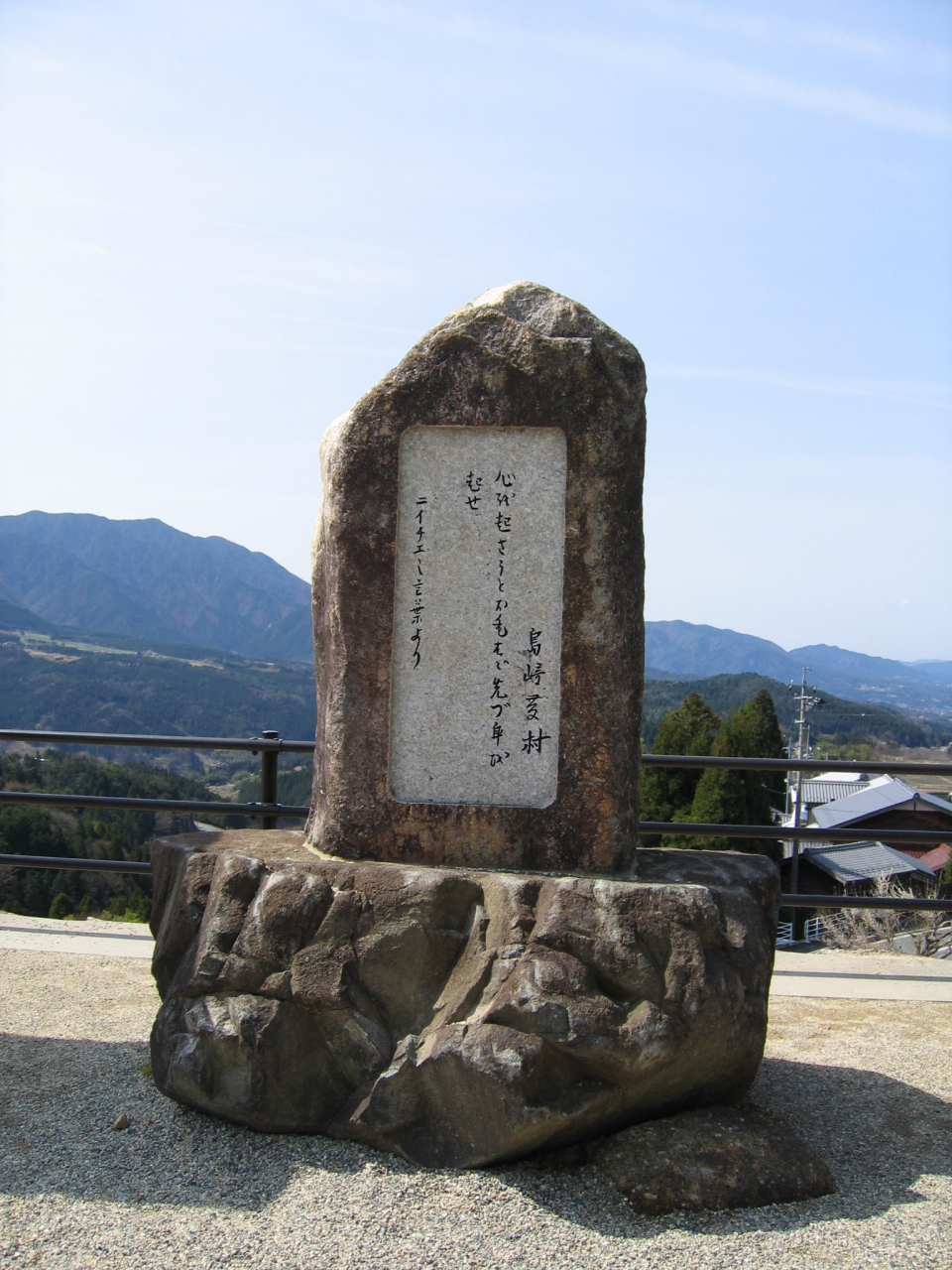 馬篭宿北入口から妻籠宿方面に歩いて、馬籠宿高札場の近くに展望台がある。