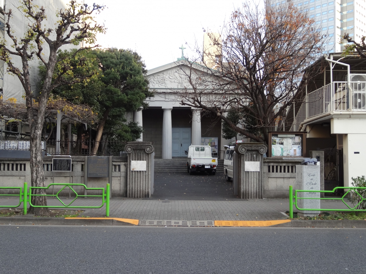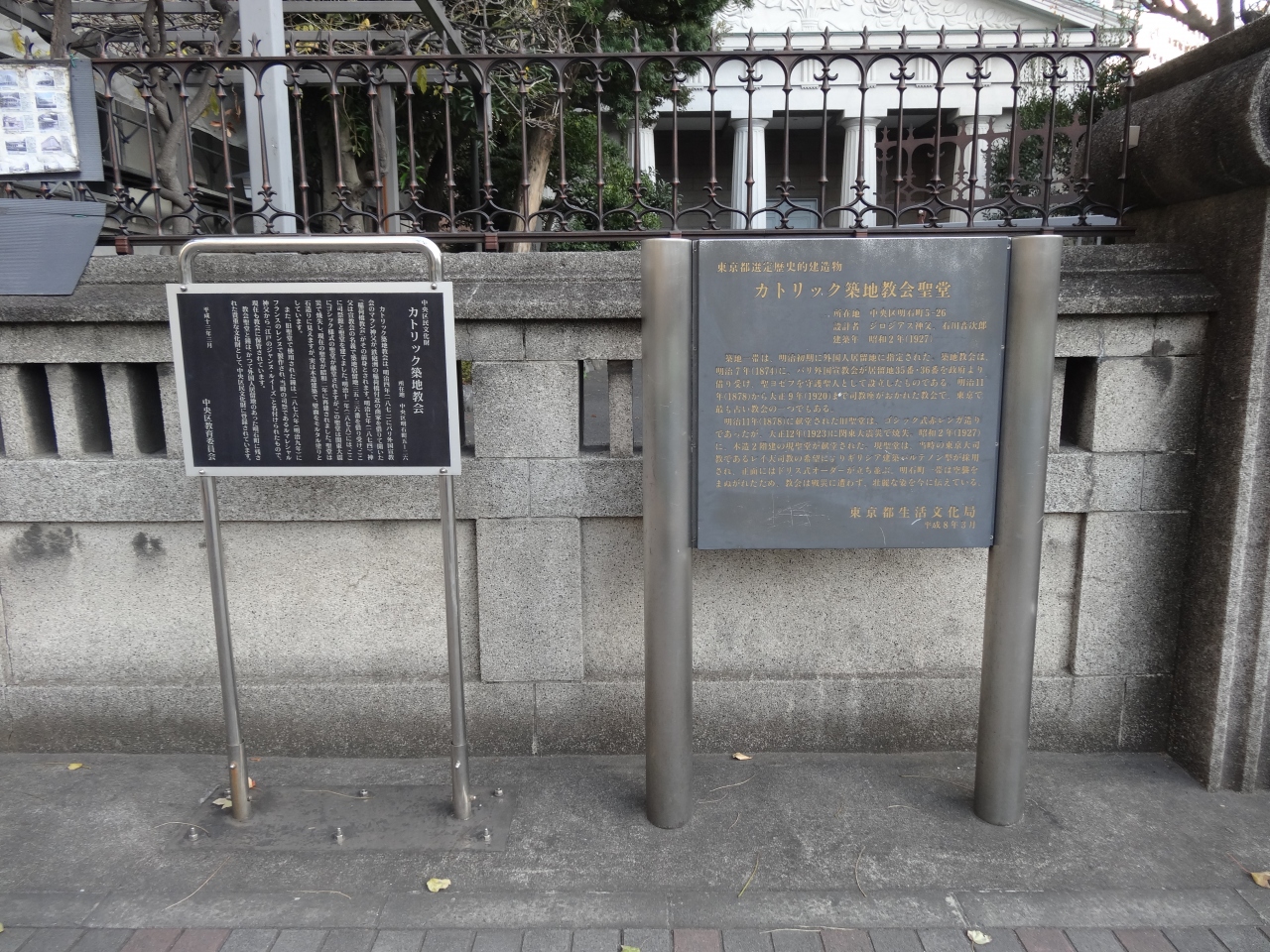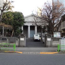 明石幼稚園・小学校から通りをははさんで位置する教会です。東京では最古の教会です。教会堂名は「聖ヨゼフ」です。現在の聖堂は、1999年に東京都選定歴史的建造物、2001年には中央区・区民文化財に指定されています。