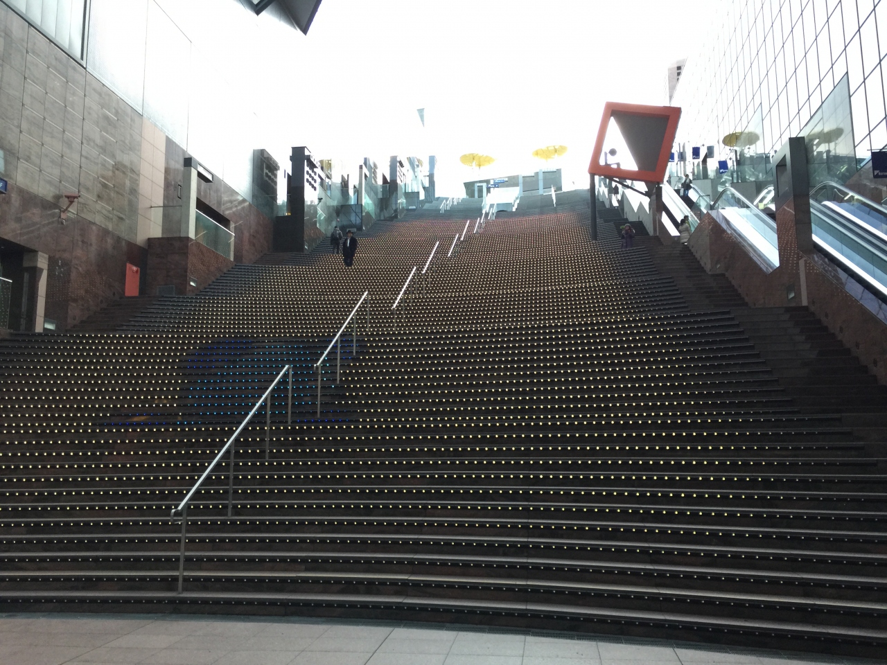 巨大な吹き抜けのエスカレーターで最上階まで上がれます。