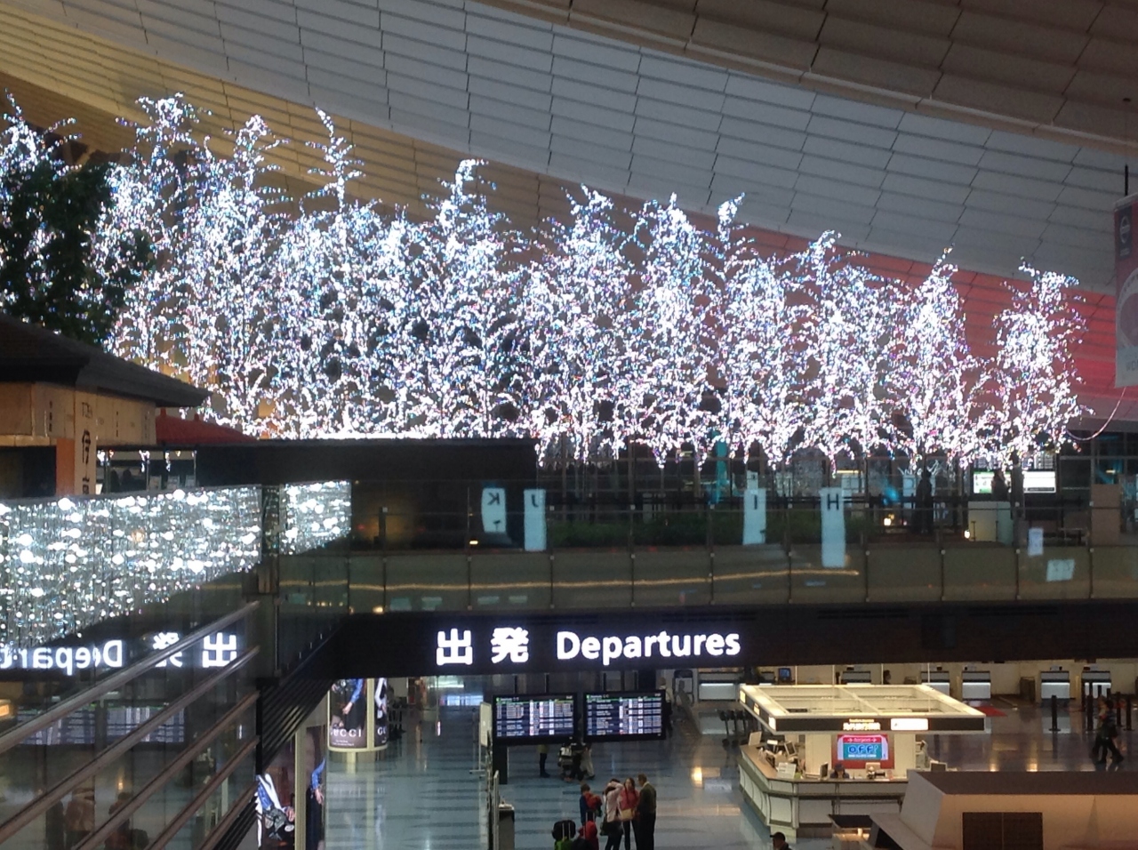 1月にいきましたが、イルミネーションがきれいでした。出発フロアは時間によって混んでいたり閑散としてたり、、、と波があるようです。新しいショップや吉野家などリーズナブルな食べ物屋が増えていたのはありがたいですね。