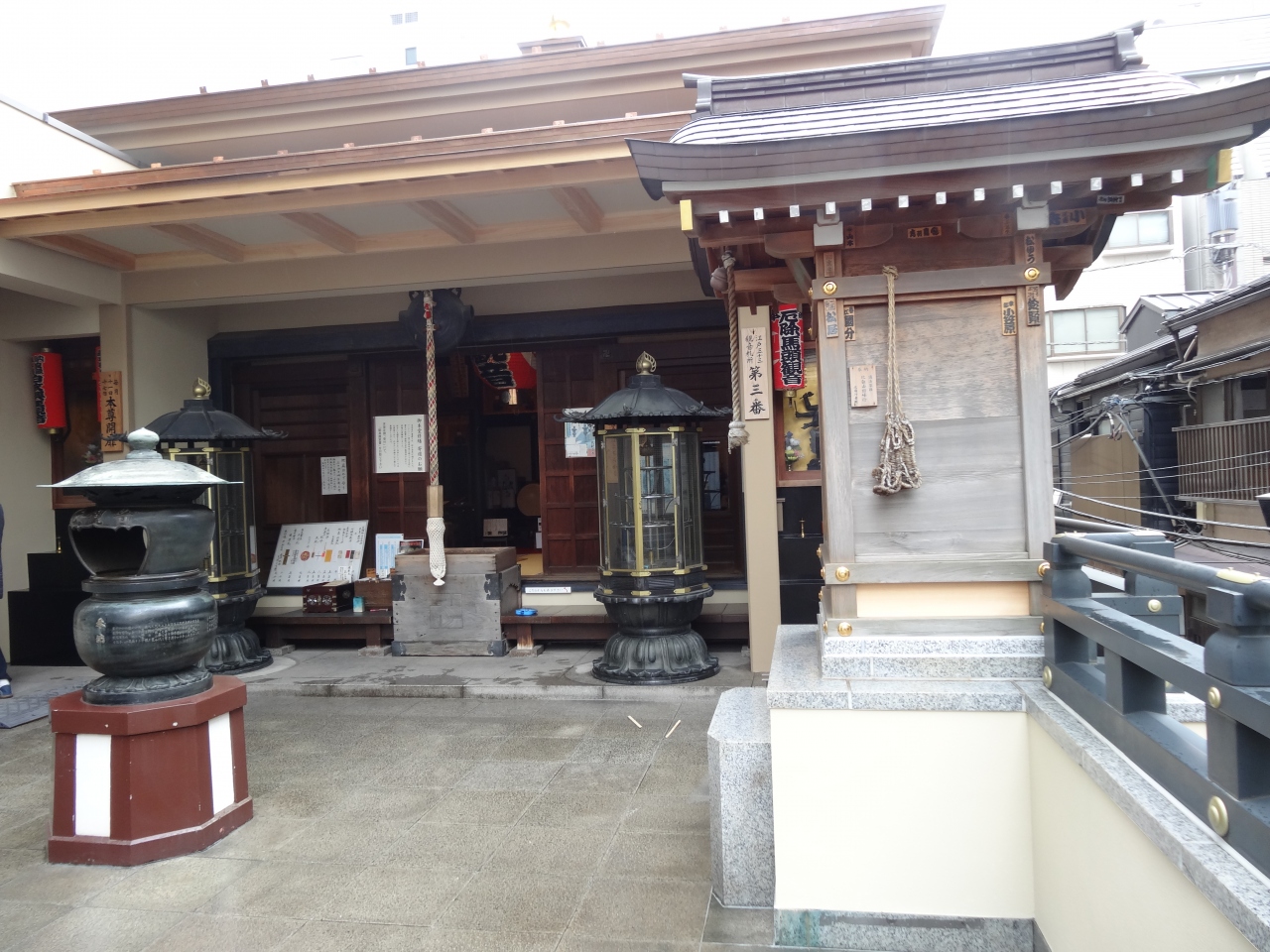 東京メトロ日比谷線・人形町駅からすぐの場所にあります。本尊である鉄観音像は、明治の神仏分離令によって東京深川の御船蔵前に移され、明治9年、この地の仮堂に安置されました。鉄観音像は、頭部のみの像で、1メートル70センチの鋳鉄製です。江戸三十三観音霊場の三番目のお寺でもあります。