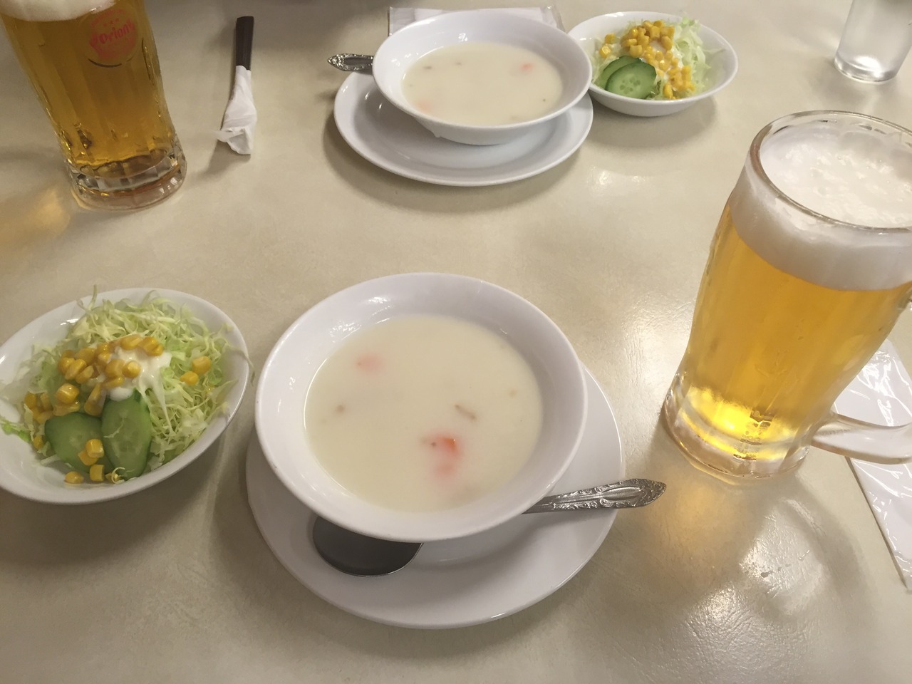 スープ:薄いクリーム?スープ(コショウをお好みで2~3振りをオススメします)