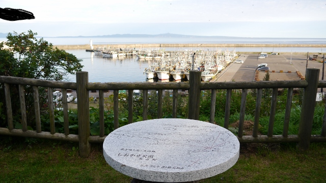 しおかぜ公園は知床羅臼地区にある公園。高台に位置しており海の眺望が望める。正面に国後島が見られ、その近さを実感する。知床旅情の歌碑があるほか、ボタンを押すと歌が流れ、歌の舞台になっている場所にいることを実感する。