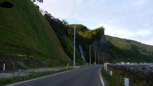 羅臼の市街地から知床半島先端の相泊方向に道を進んでいくと進行方向左手の岩場に滝を見ることができる。落差は30mほどで近くで鑑賞していると水しぶきがかかってくる。真夏の暑い日は涼が感じられて良いかもしれない。