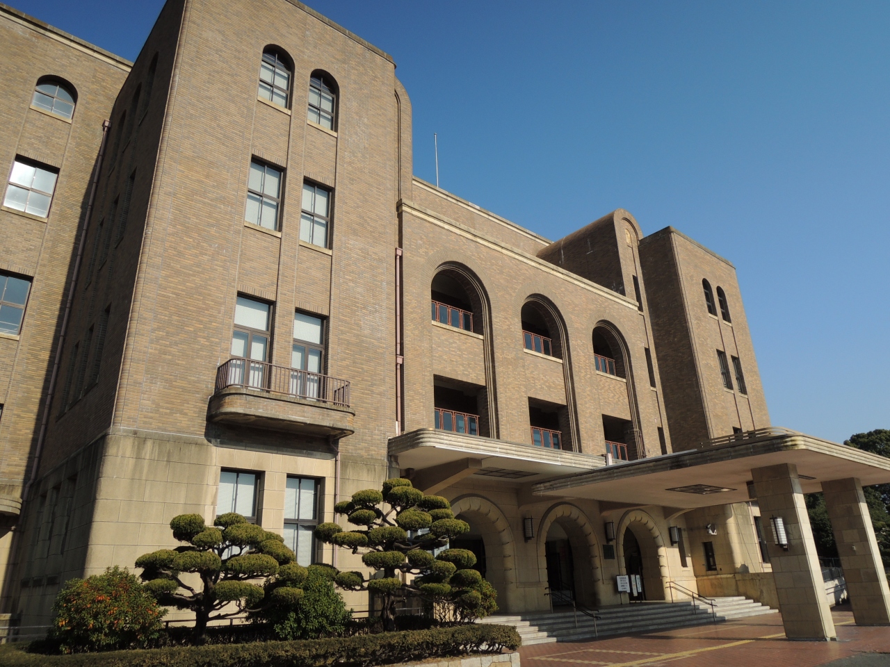 昭和5(1930)年10月10日に開館した名古屋市公会堂は外壁はこげ茶色のタイルで仕上げ、直線を基調としつつコーナーは丸みを帯びて落ち着いた重厚感ある建物です。