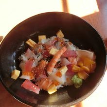 にぎり寿司にして3、4種類の生ネタが細切りになって寿司飯の上に散らばっているだけ。