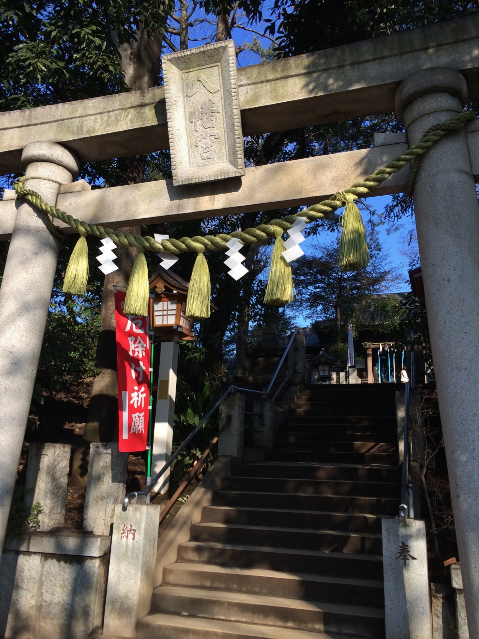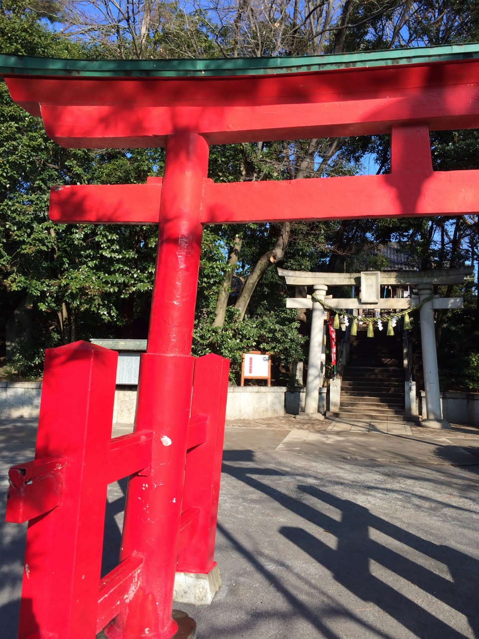 洗足池公園の一角にありました、洗足池の畔に赤い鳥居が立ち、奥の小高くなったところに本殿がありました。