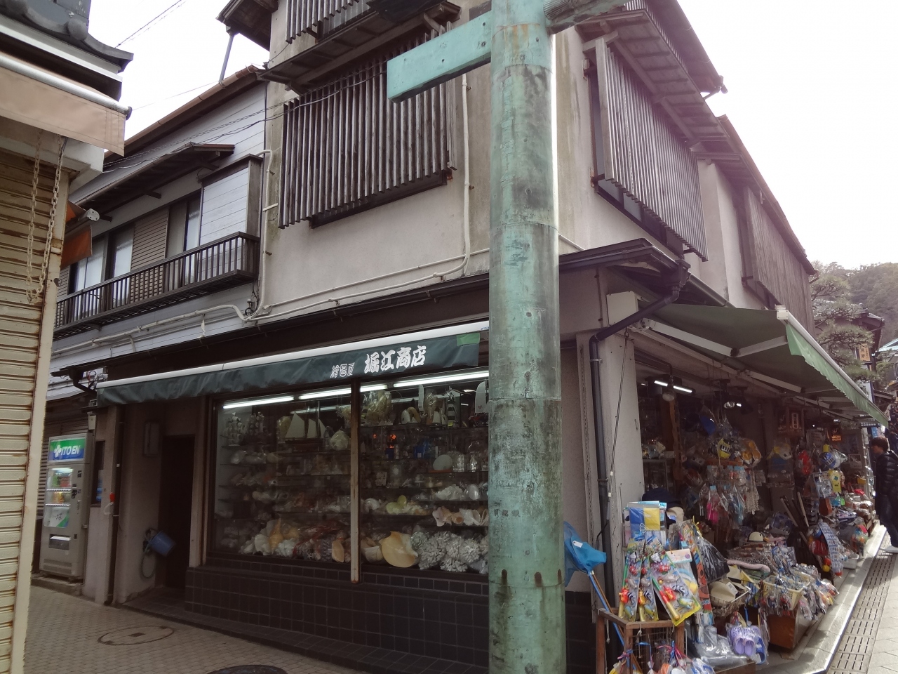 江の島大橋を渡り、弁財天仲見世通りの参道沿い、鳥居のすぐわきにあるお店です。