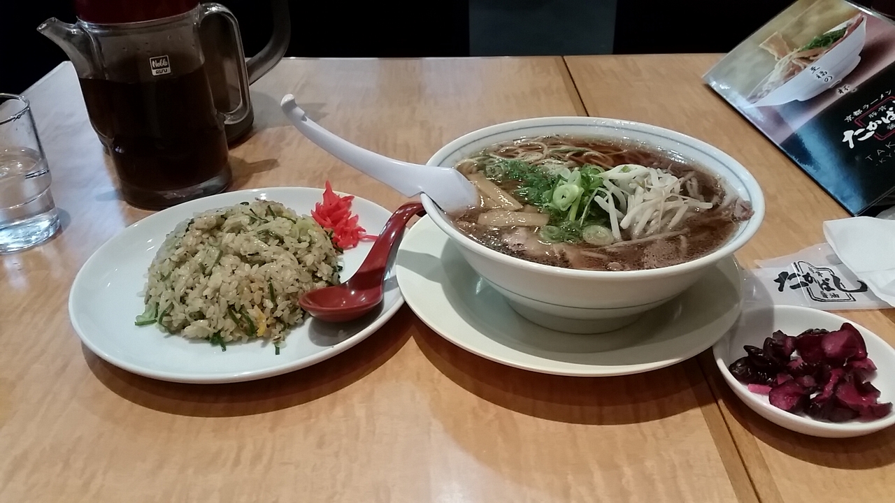 お勧めらしい、たかばしラーメンにチャーハンセット 950円です。