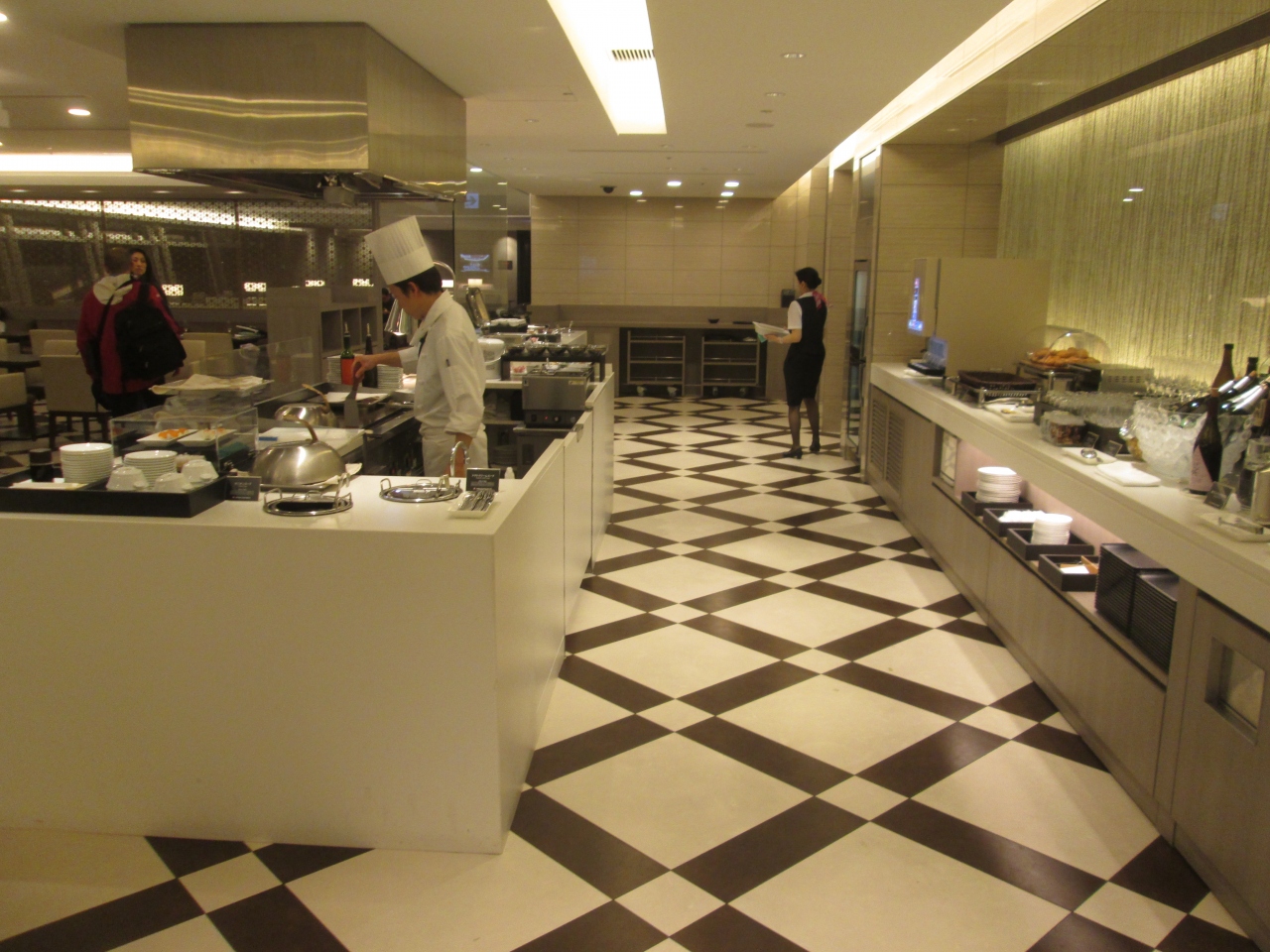 ターミナル拡張にともないリニューアルされたようです。中央のダイニングでは鉄板焼きによるサービスを行ってくれます。夕食時に利用するとジューシーなハンバーグを提供していました。JAL名物のビーフカレーも利用できました。