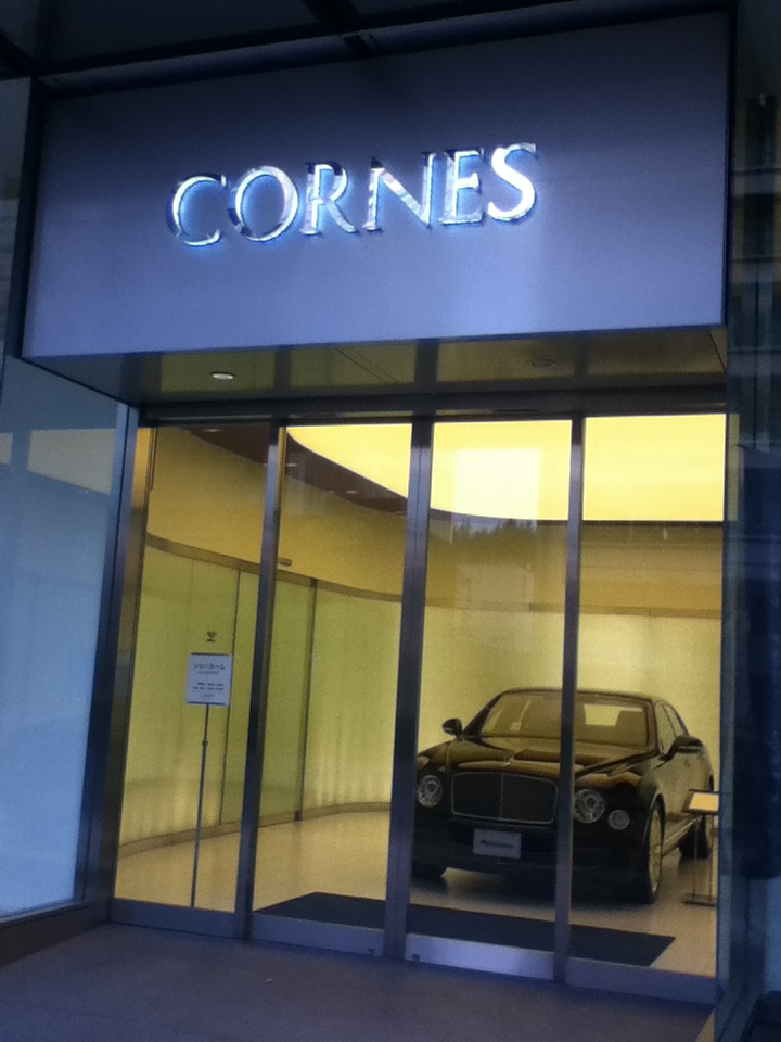 地下鉄青山一丁目駅の南西、青山通り沿いにある。入口のドアにすぐ先には、黒塗りのベントレ―がこちらに向けて展示されている。その奥はショールームで、綺麗なインテリアに囲まれ、外車がいくつも展示されている。いずれも1台数千万円以上で、いつか気軽に乗りたいものである。特に高級外車に関心がある方には、訪問することをお勧めする。
