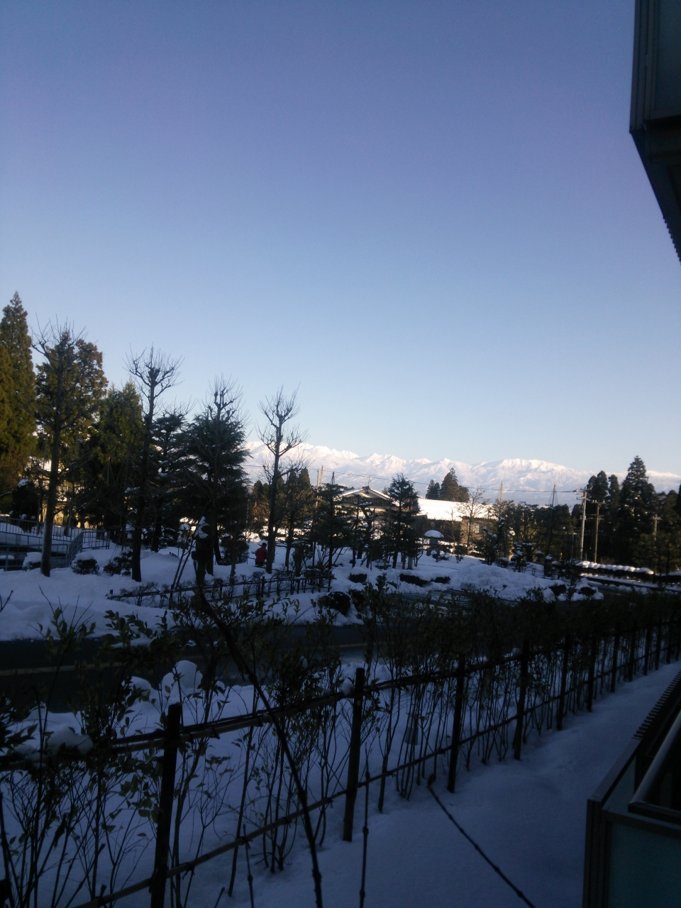 富山の街中からも見れます。特に昨年末から、北陸エリアは大雪が続いたせいか、立山連峰が例年より、冬景色が鮮やかです。富山の街中は例年雪がすくないですが、今シーズンは多いようです。富山もくもりがおおいですが、晴天の日は街中からもとてもきれいです。