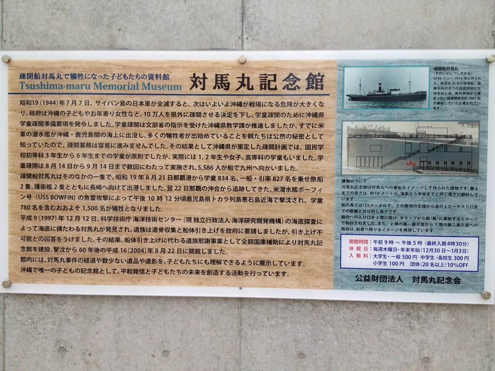 - 疎開船対馬丸の悲劇とその後を展示しています。