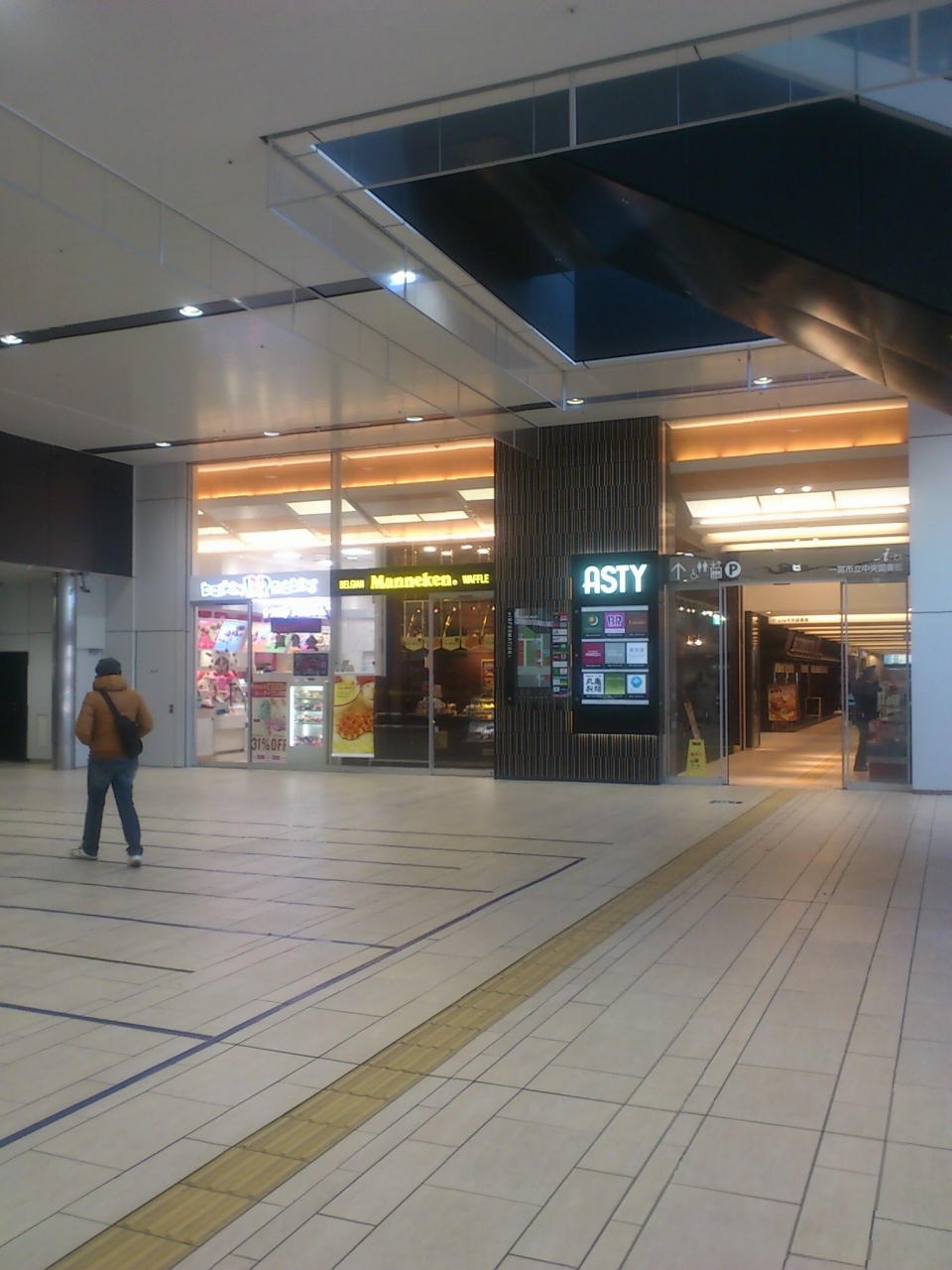 尾張一宮の駅ビルのiビル内のショッピング街です。JRの改札を出てすぐです。ASTYは駅なかの商業施設で、あちらこちらにありますが、この一宮のASTYはまだ新しく、お店も飲食店だけでなく、ドラッグストアや書店などが揃っていて充実しています。