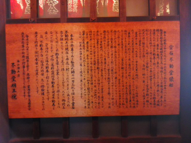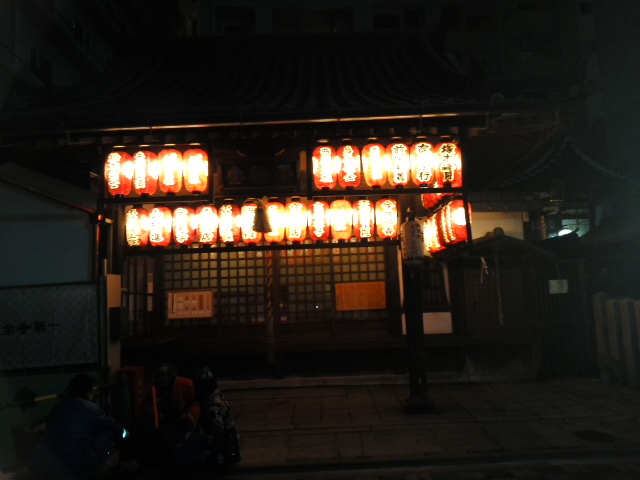 京都駅に夜7時ごろ到着、宿舎に向かうため中央口から5分ほど歩いていて見つけました。夜にもかかわらず提灯が並んでいて明るく、目を引きました。弘法大師空海が、石に彫刻したあと寺院の井戸の底に沈めてしまい、誰も見たことのない不動明王像に由来する施設なのだそうです。右隣に道祖神を祀った道祖神社があります。