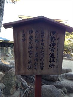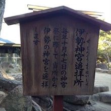 西宮神社 (にしのみやじんじゃ)には、伊勢神宮遥拝所が有ります。毎年、10月17日の神宮祭には、遠く離れた西宮神宮より、拝むために設けられたここで、参拝してみては、いかがでしょう。ぜひ、一度、行ってみてください