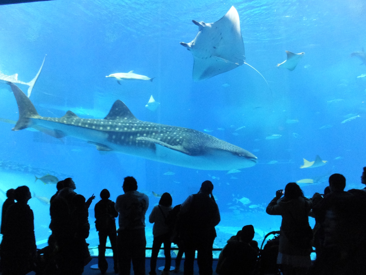 沖縄観光の目玉といえば美ら海水族館でしょう。展示の中心になっている大水槽「黒潮の海」は見逃せませんが、他にもきれいな展示がたくさんあって楽しめます。大水槽の上側から見学できるコースがあるので、ぜひ行ってみてください。