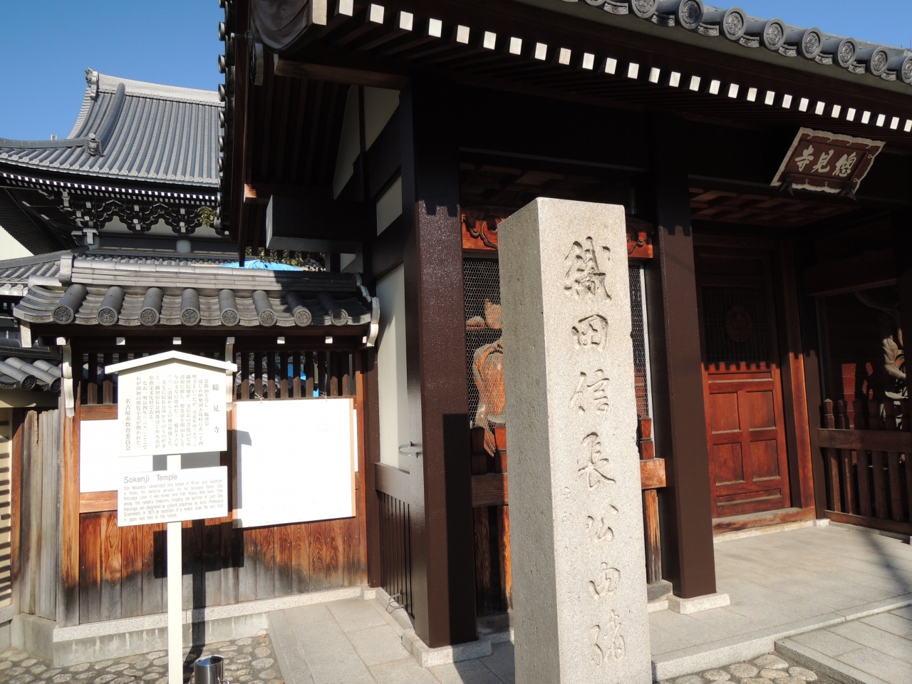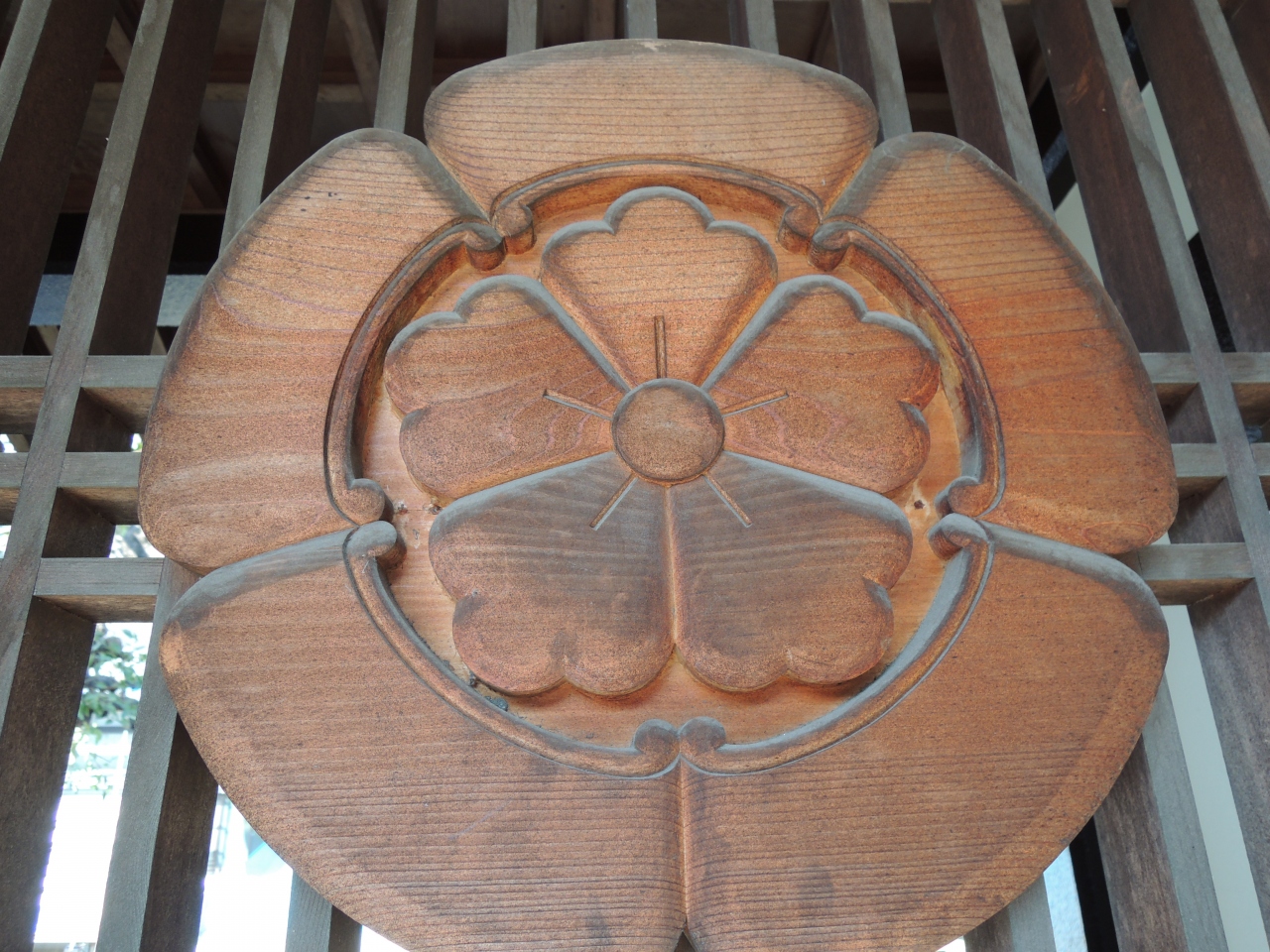 総見寺の門の前に立つとここは織田家と由縁があるとすぐわかる大きな家紋が目に入ります。