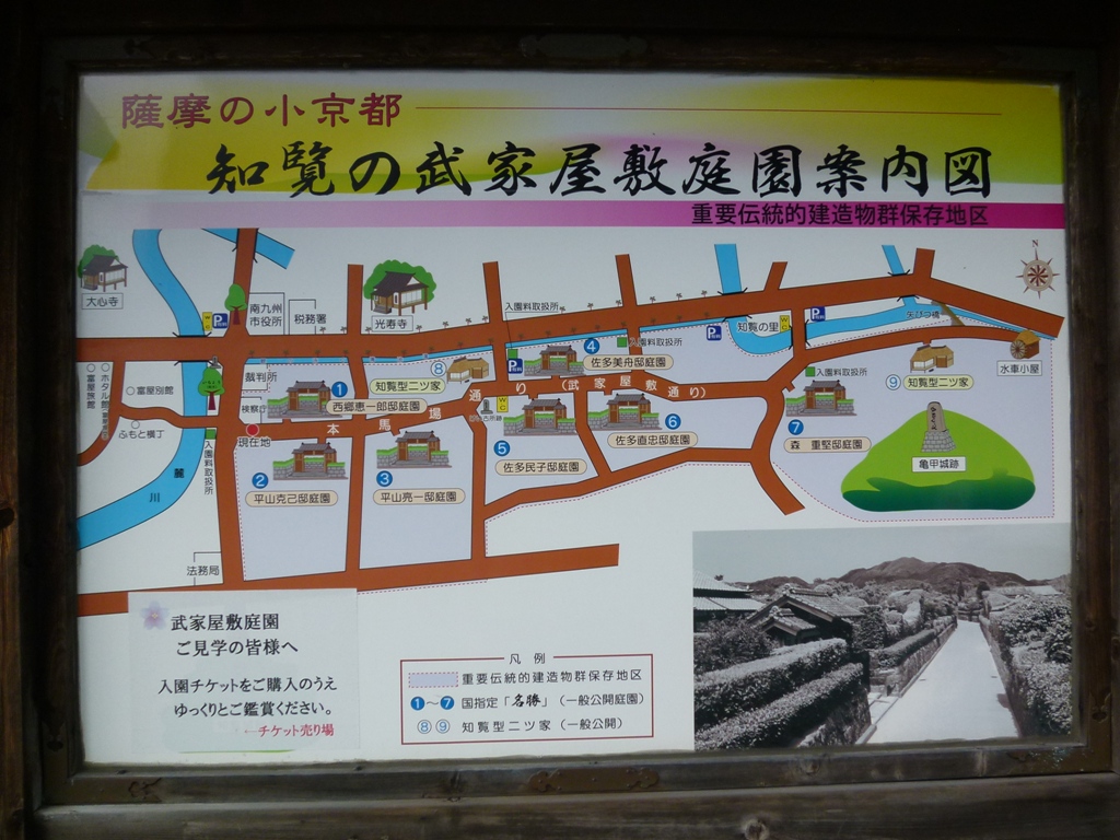 薩摩半島の南部に位置する知覧町は、ここも島津家77万石の城下町の遺構が残る武家屋敷に由来する文化の街並が残されています。細い道路沿いに石垣が続き、石垣の上部に突き出るように完全に外部と遮断してしまう壁のように多数の植木が大きくつくらたた生垣になっていて、とても美しい剪定が印象的です。庭園は有料で見学できます。限られた面積の中に造りだす枯山水を用いた庭園は京都から庭師を呼びよせて造られたそうですが、観る人の目にはどのように映るのでしょう。居住しているお屋敷もあり全てが見られるわけではありません。私語を慎み、ゆっくり散策、とても風情のある景観でした。