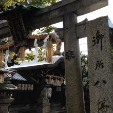 現在は御池通高倉にありますが、もともとは御池通堺町にあり、太平洋戦争中に現在の地に移転されたようです。ここ「御所八幡宮」は、足利尊氏の守護神で9月には安全や無病息災などを願って秋祭りが実施されます。小さな境内はひっそりしていますが、祭の時期にはとても賑わうことでしょう。是非この時期にどうぞ。