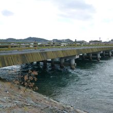 今回は宇治を訪問しています。コースはJR宇治駅から平等院へ宇治公園を抜けて宇治神社など散策し京阪宇治までです。やっと最終地点の「宇治橋」です。今日の宇治川は水害対策の河川工事もしているせいか、流れが速く川らしい川です。ここに架かる「宇治橋」は、「瀬田の唐橋」「山崎橋」とともに、日本の三古橋のひとつになっています。ふるいですね。今の橋は当然再建したものですが、歴史を象徴する擬宝珠が、より歴史を感じさせています。付近は有名な観光スポットばかりです、どうぞお越しください。